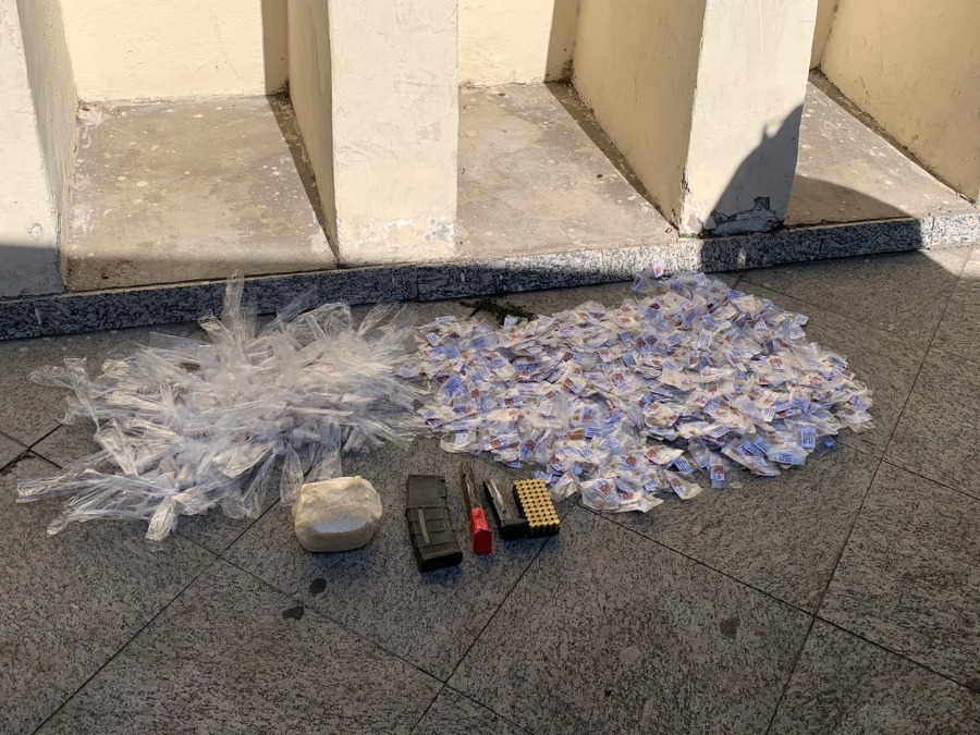 De acordo com a PM, durante buscas no local indicado, os agentes encontraram um tonel enterrado contendo: 874 pedras de crack, 230 pinos de cocaína, um tablete de pasta base da mesma droga, além de um carregador de pistola calibre .380, outro de pistola 9mm, um carregador de fuzil calibre 5.56mm e 50 munições de 9mm.